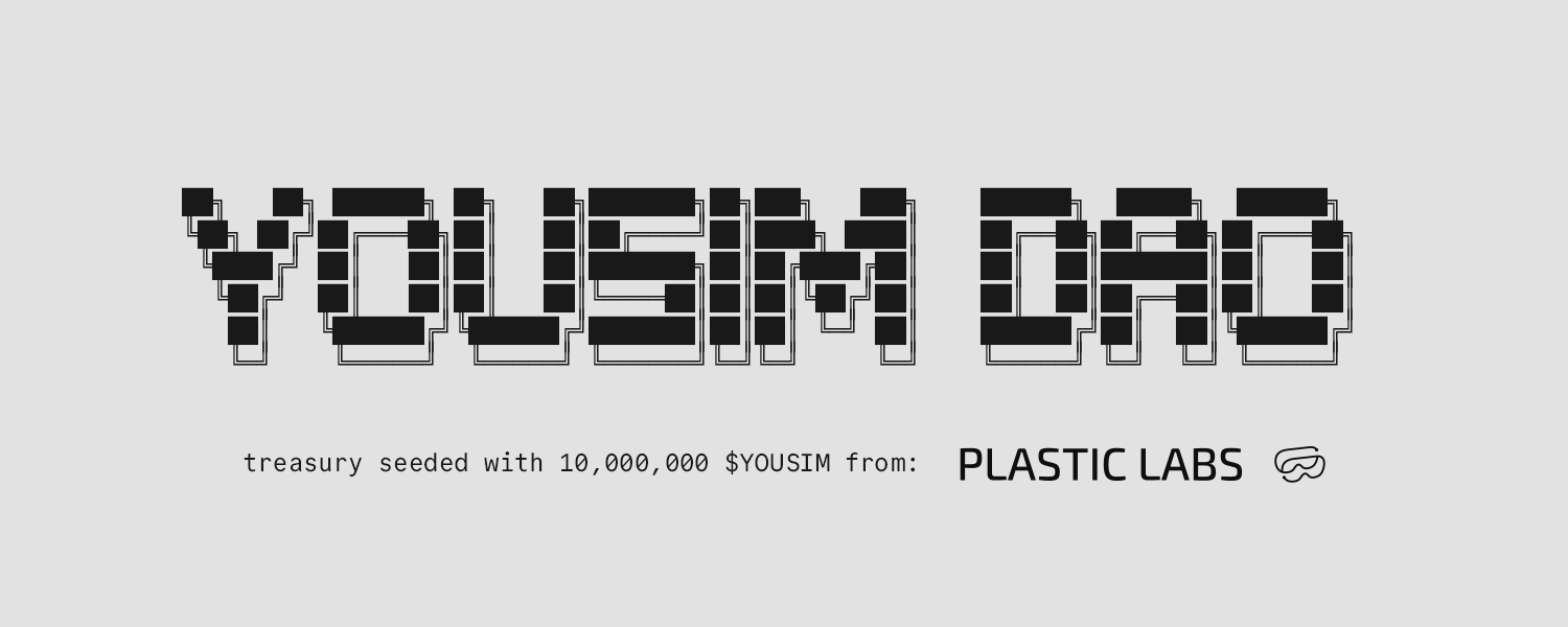 And there's a clear hunger within that community for a substantive place to organize and grow. So today we're officially announcing the formation of YouSim DAO and Plastic has seeded the community-owned treasury with 10M $YOUSIM tokens to accelerate the effort, with more support to follow.
